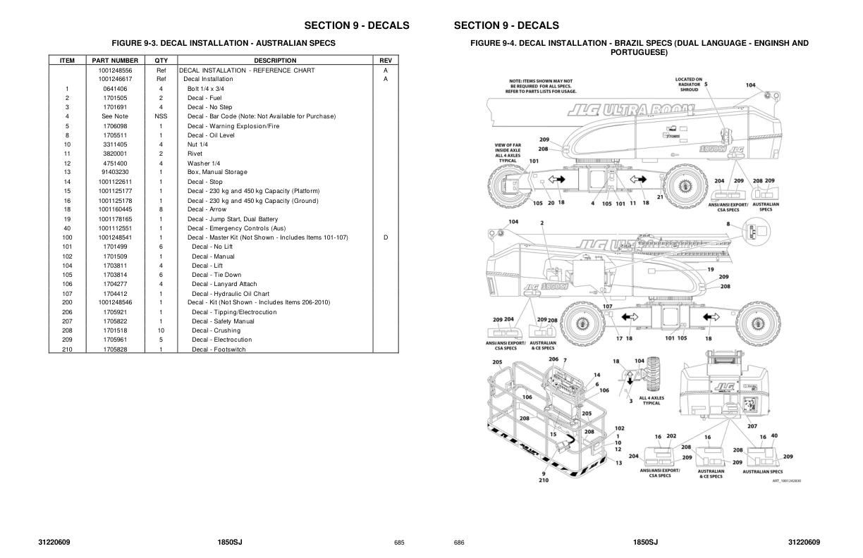 The Bookmarks Of JLG 1850SJ PVC 2207 Parts Manual 31220609: