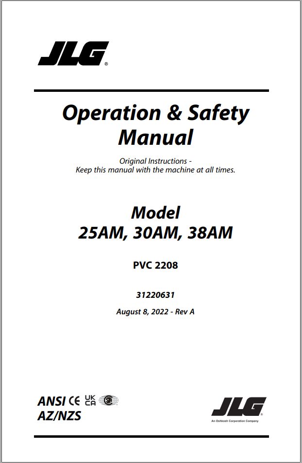 JLG 25AM 30AM 38AM PVC 2208 Operation Safety Manual 31220631