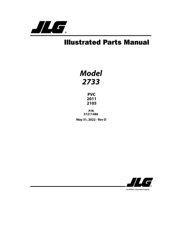 JLG 2733 PVC 2011 2105 Parts Manual 31211486