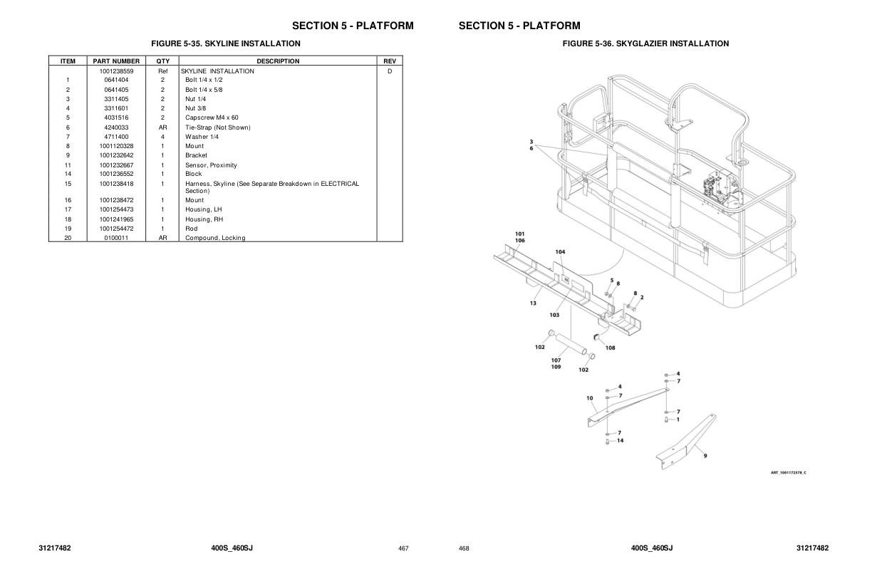 The Bookmarks Of JLG 400S 460SJ PVC 2107 Parts Manual 31217482: