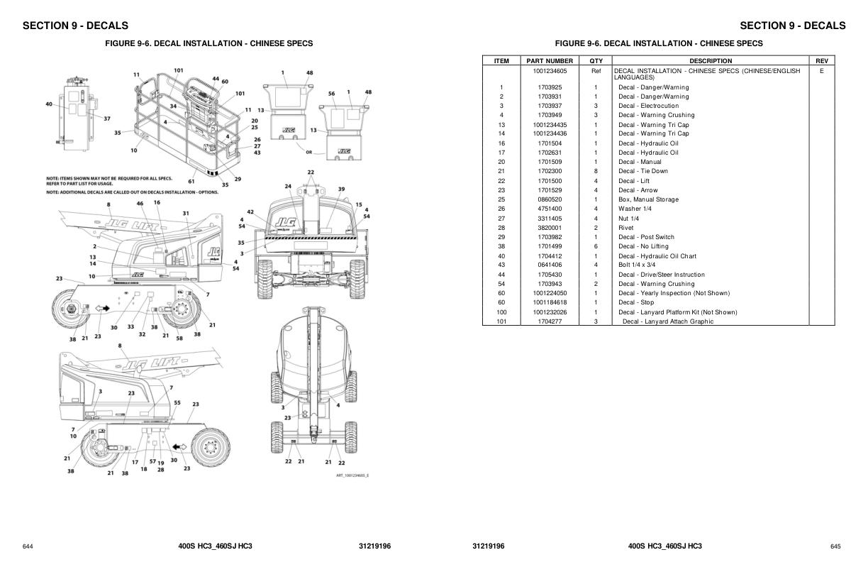 JLG 400S HC3 460SJ HC3 PVC 2201 Parts Manual 31219196