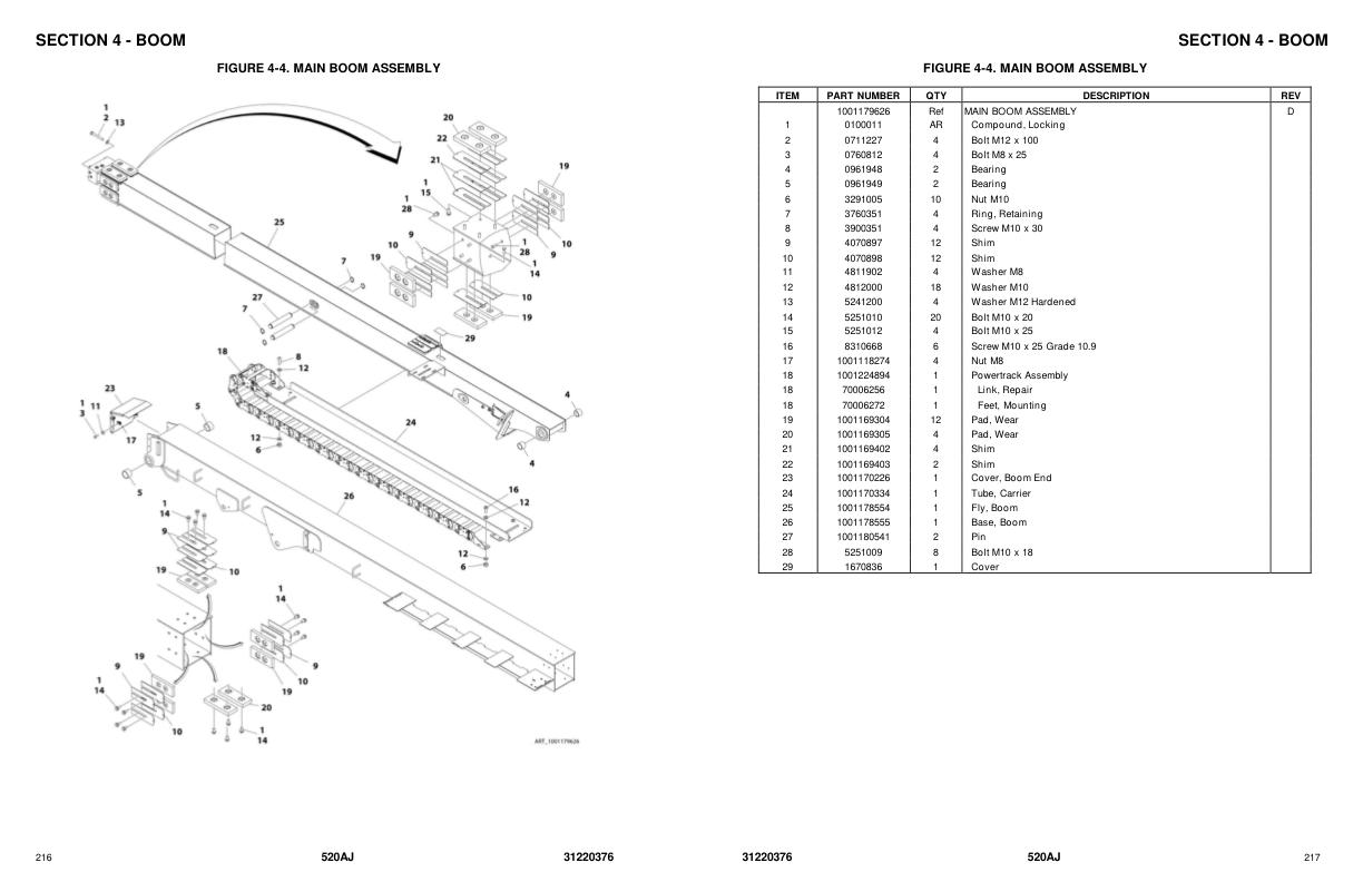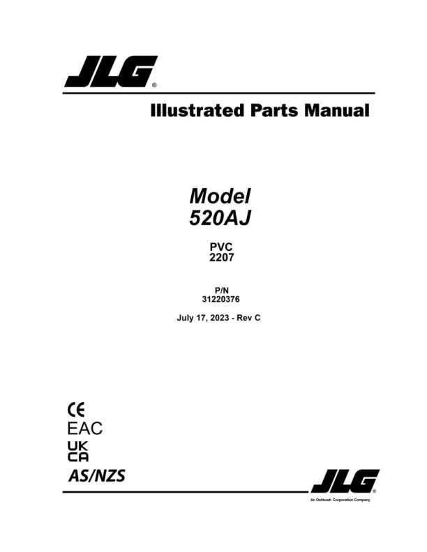 JLG 520AJ PVC 2207 Parts Manual 31220376