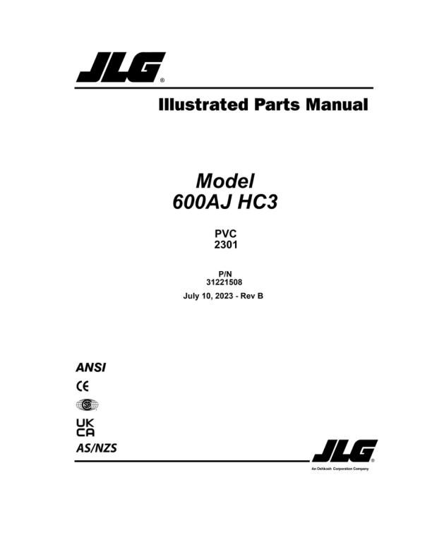 JLG 600AJ HC3 PVC 2301 Parts Manual 31221508