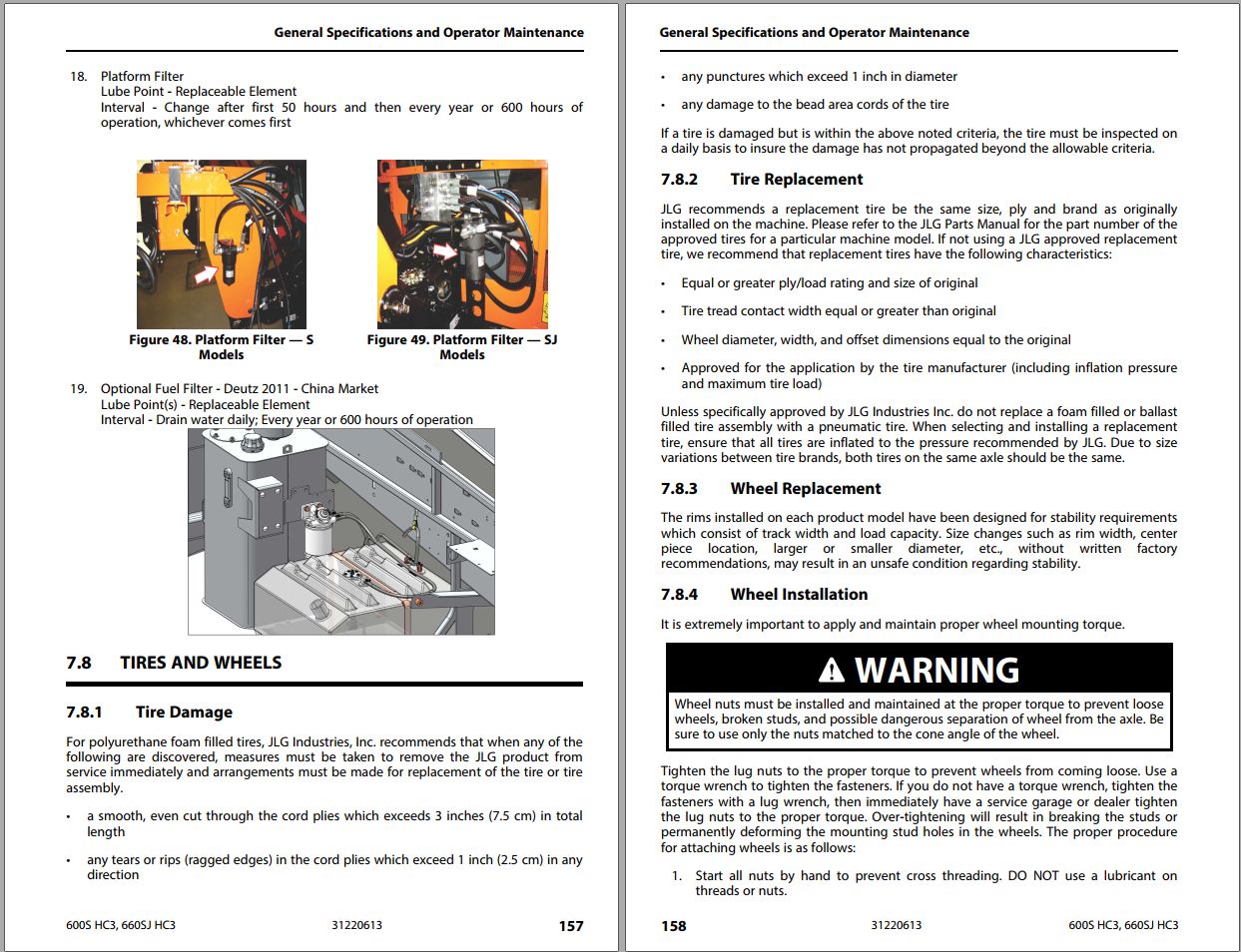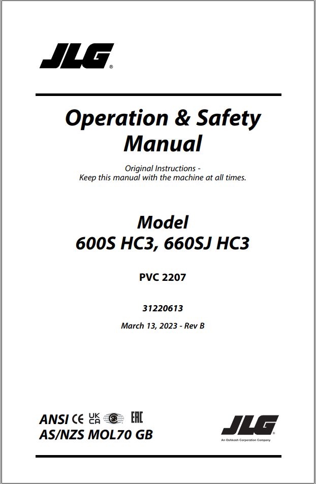 JLG 600S HC3 660SJ HC3 PVC 2207 Operation Safety Manual 31220613
