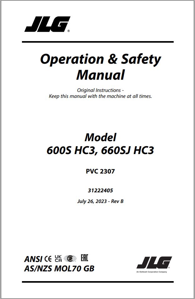 JLG 600S HC3 660SJ HC3 PVC 2307 Operation Safety Manual 31222405