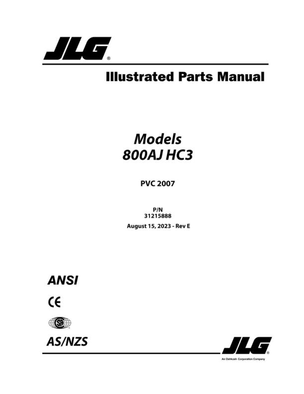 JLG 800AJ HC3 PVC 2007 Parts Manual 31215888