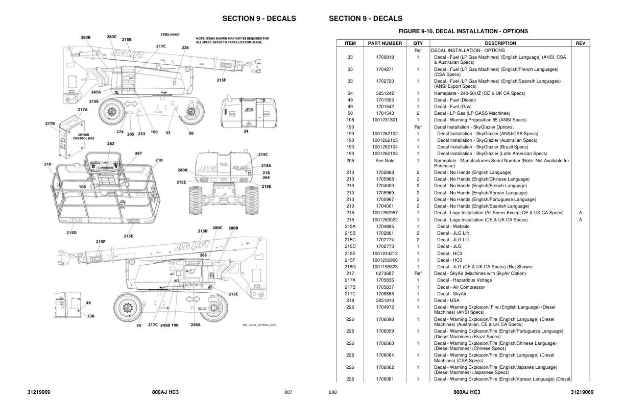 JLG 800AJ HC3 PVC 2107 Parts Manual 31219069