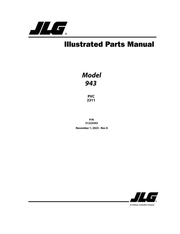 The Bookmarks Of JLG 943 PVC 2311 Parts Manual 31222443: