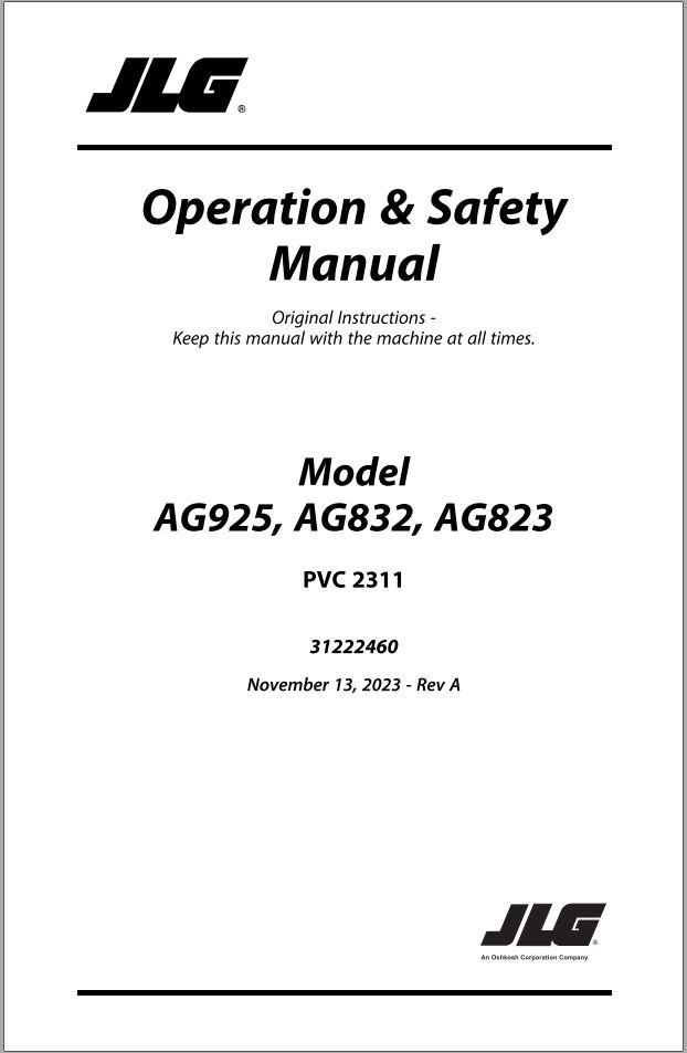JLG AG823 AG832 AG925 PVC 2311 Operation Safety Manual 31222460