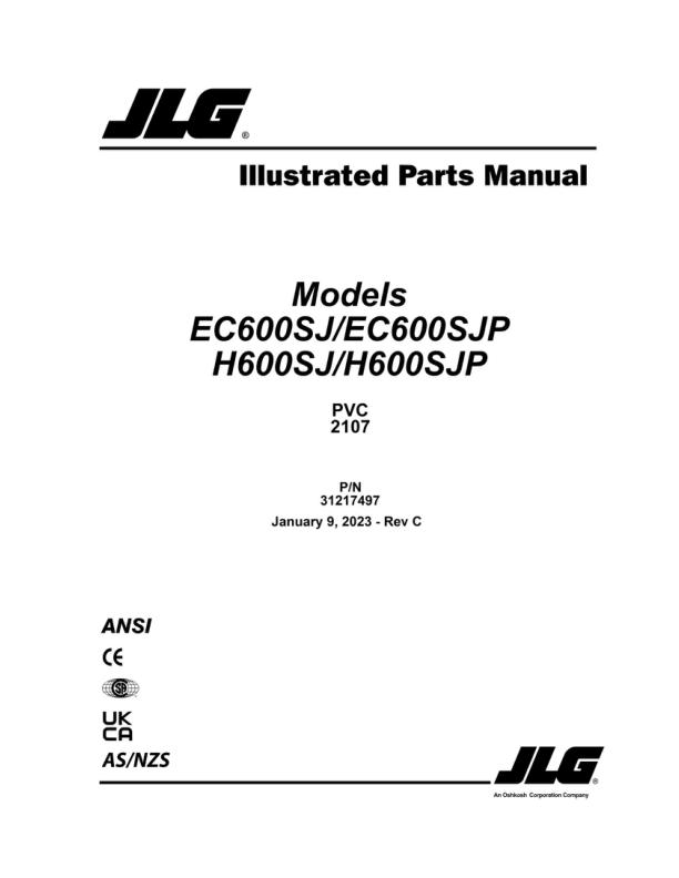 JLG EC600SJ EC600SJP H600SJ H600SJP PVC 2107 Parts Manual 31217497