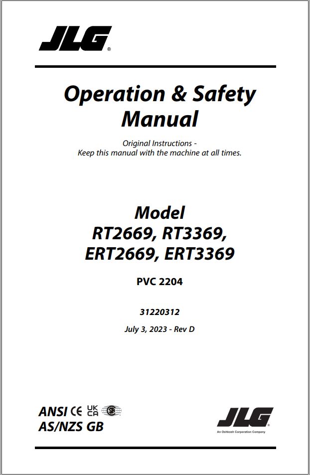 JLG ERT2669 ERT3369 RT2669 RT3369 PVC 2204 Operation Safety Manual 31220312