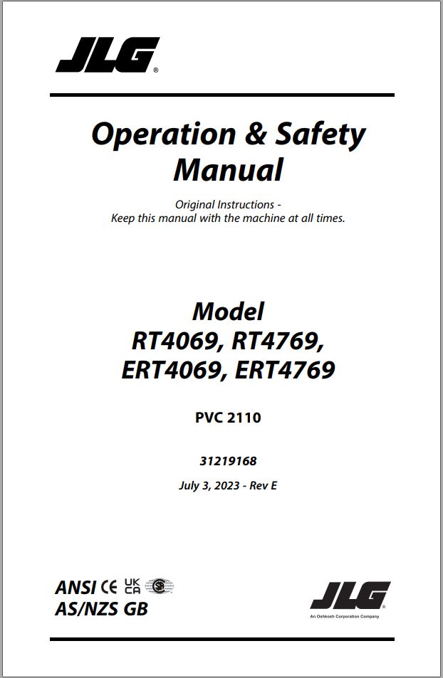 JLG ERT4069 ERT4769 RT4069 RT4769 PVC 2110 Operation Safety Manual 31219168