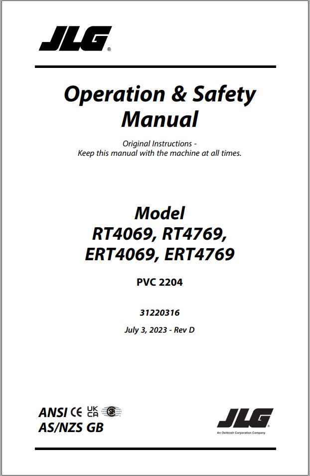 JLG ERT4069 ERT4769 RT4069 RT4769 PVC 2204 Operation Safety Manual 31220316