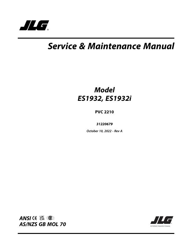 JLG ES1932 ES1932i PVC 2210 Service and Maintenance Manual 31220679