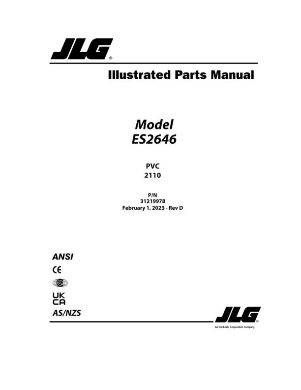 JLG ES2646 PVC 2110 Parts Manual 31219978