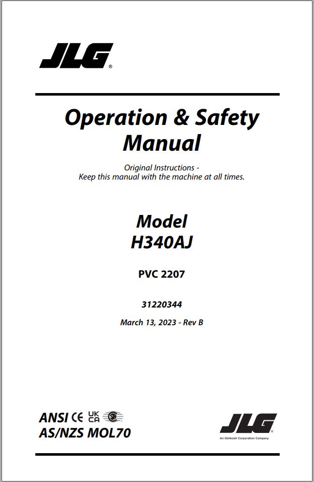 JLG H340AJ PVC 2207 Operation Safety Manual 31220344