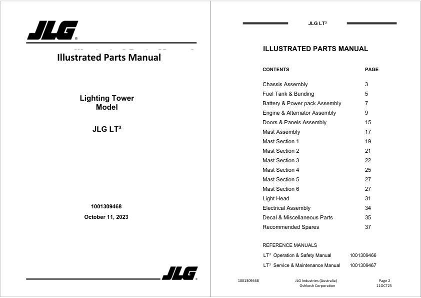 The Bookmarks of JLG LT3 Parts Manual 1001309468:
