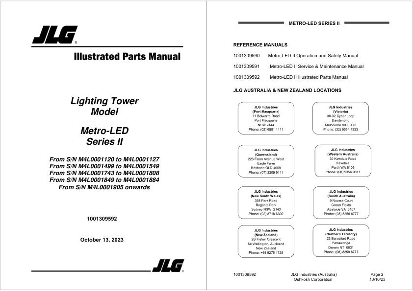JLG Metro-LED-Series II Parts Manual 1001309592