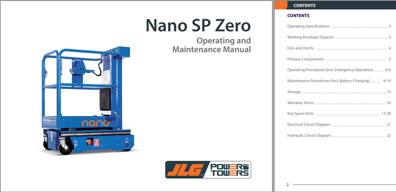 The Bookmarks of JLG POWER TOWERS NANO SP ZERO Operation Maintenance Manual 1001308859 :