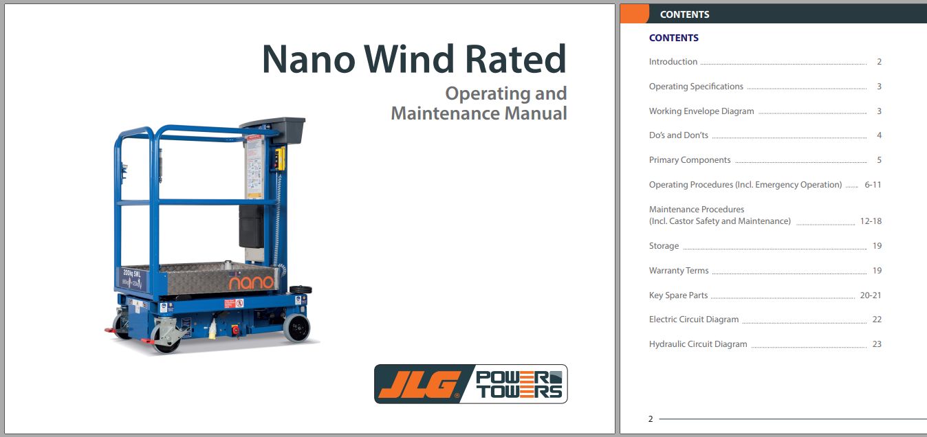 The Bookmarks of JLG POWER TOWERS NANO WR Operation Maintenance Manual 1001308879 :