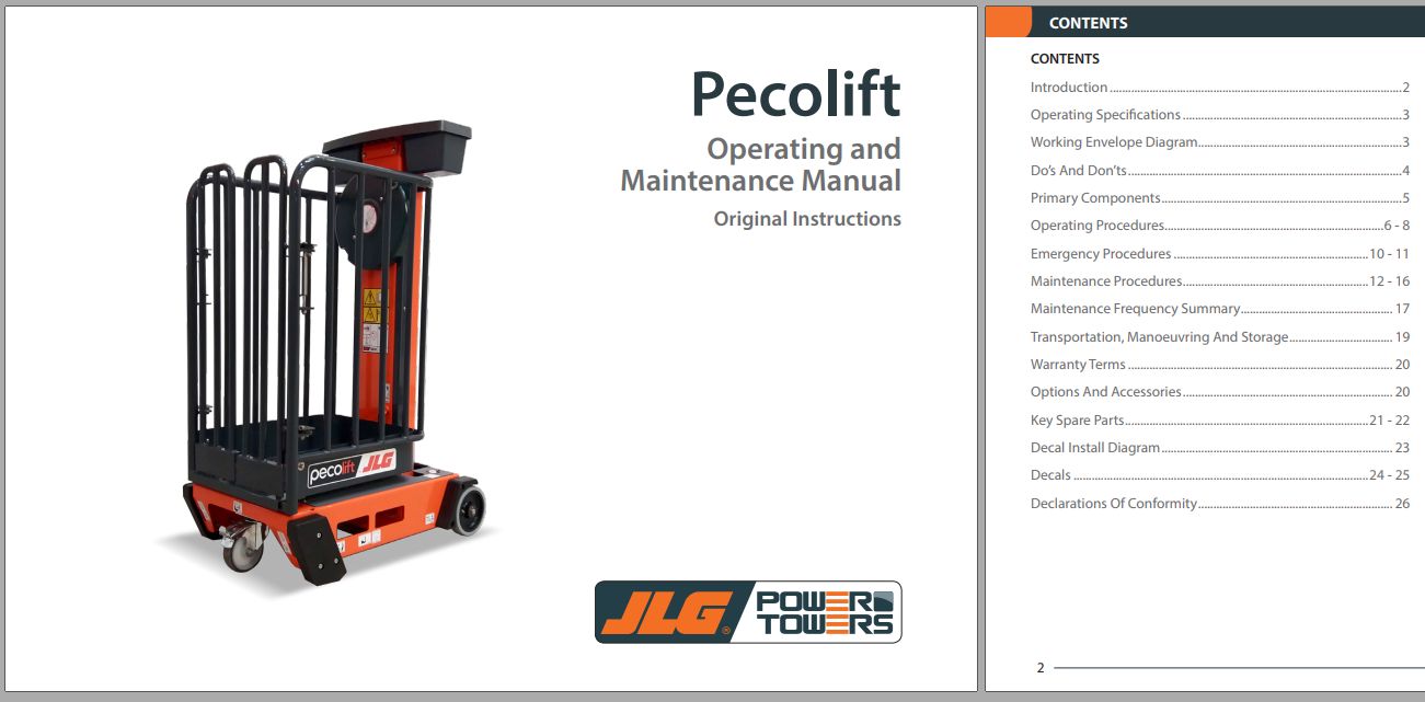 The Bookmarks of JLG POWER TOWERS PECOLIFT Operation Maintenance Manual 1001288159 :