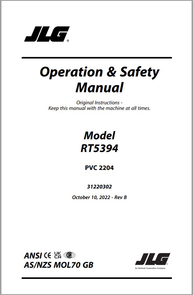 JLG RT5394 PVC 2204 Operation Safety Manual 31220302