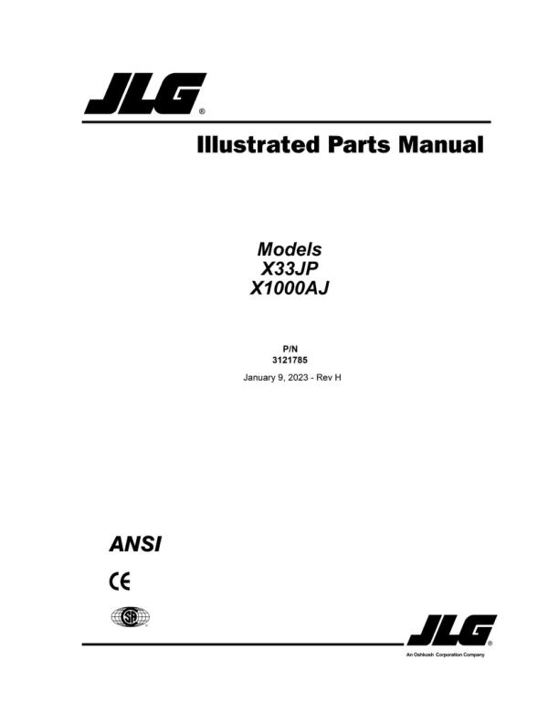 The Bookmarks of JLG X1000AJ X33JP Parts Manual 3121785: