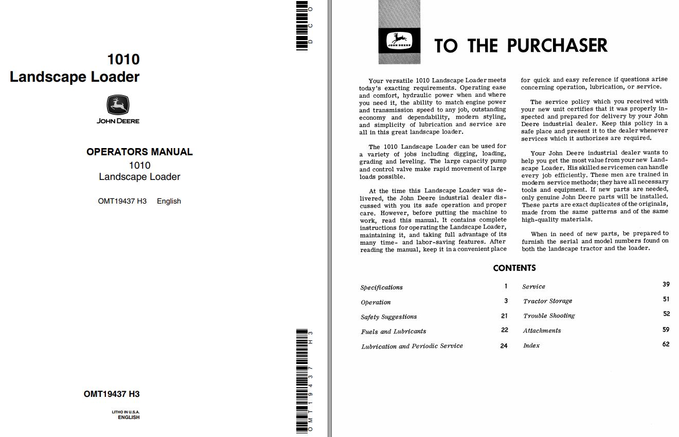 John Deere 1010 Operators Manual OMT19437