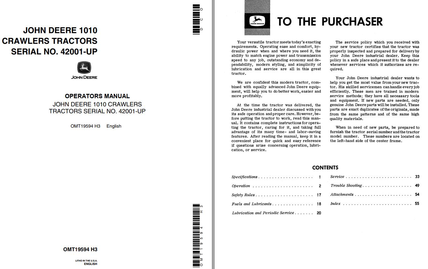 John Deere 1010 Operators Manual OMT19594 EN ES