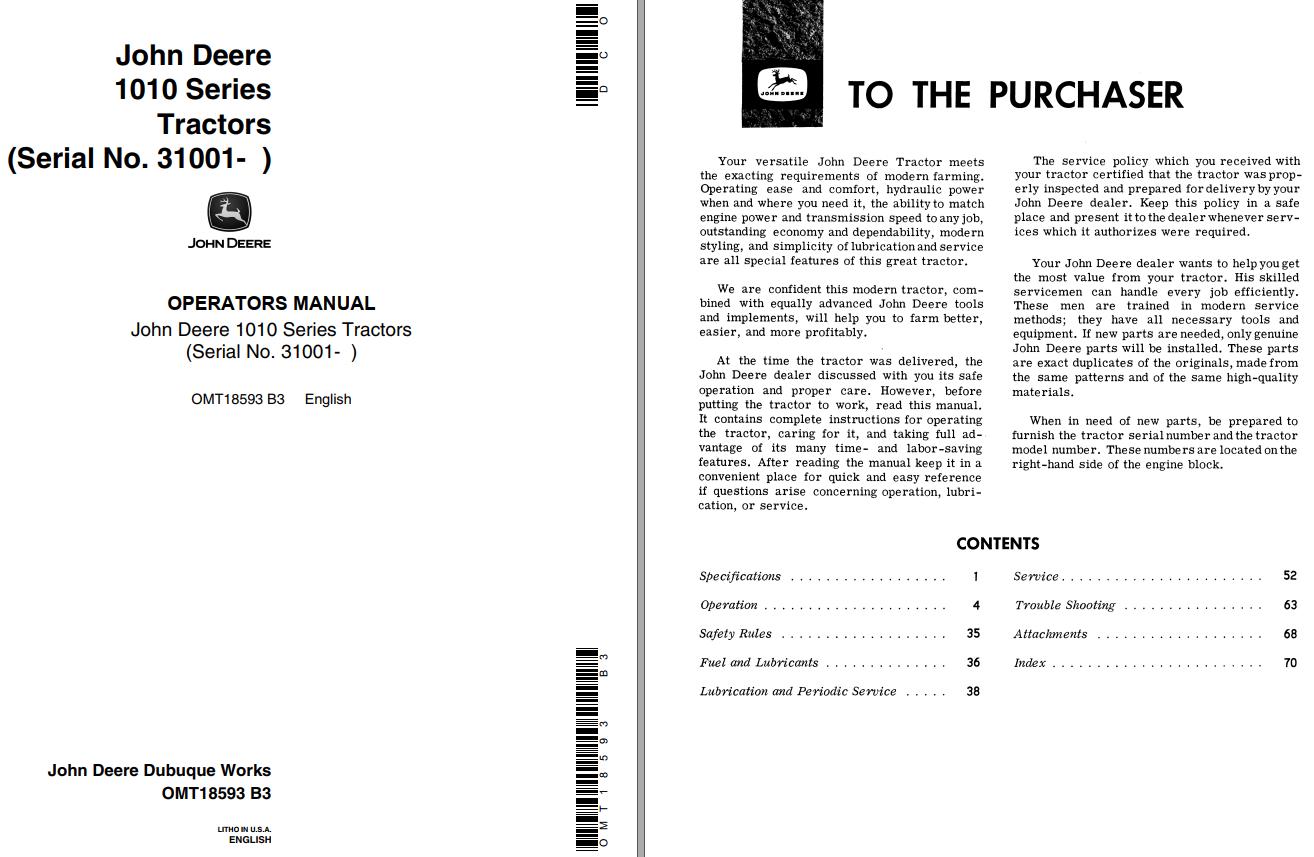 John Deere 1010 Series Operators Manual OMT18593 (76 Pages)