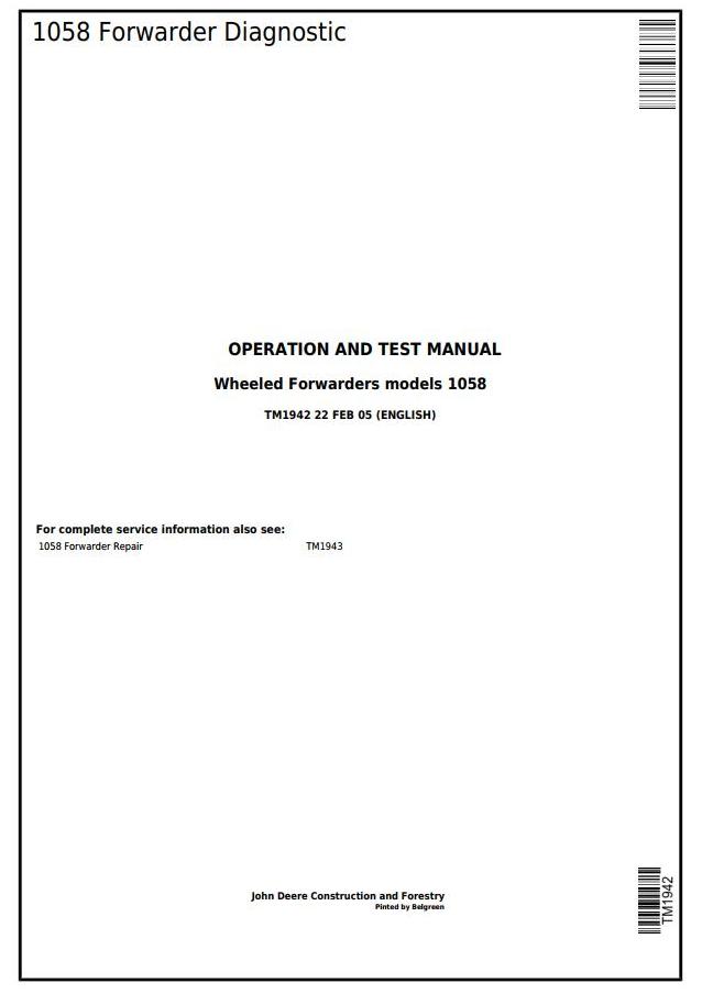 John Deere 1010B 1058 Forwarder Diagnostic Operation Test Manual TM1942