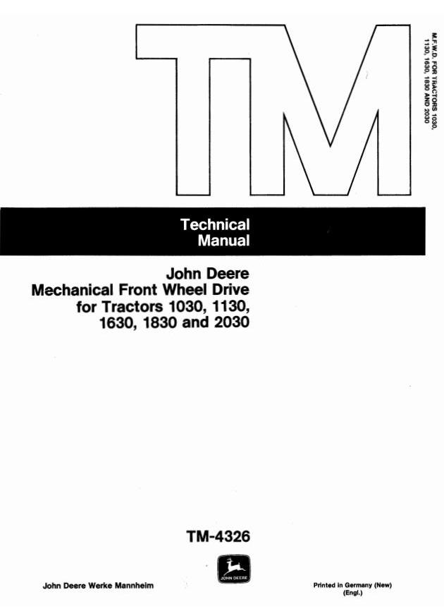 John Deere 1030 1130 1630 1830 2030 Tractor Technical Manual TM4326
