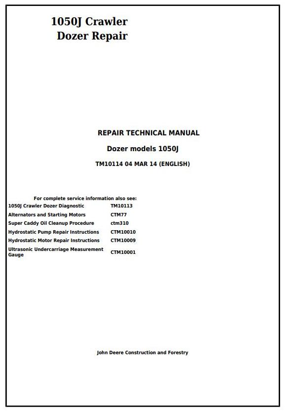 John Deere 1050J Crawler Dozer Repair Technical Manual TM10114