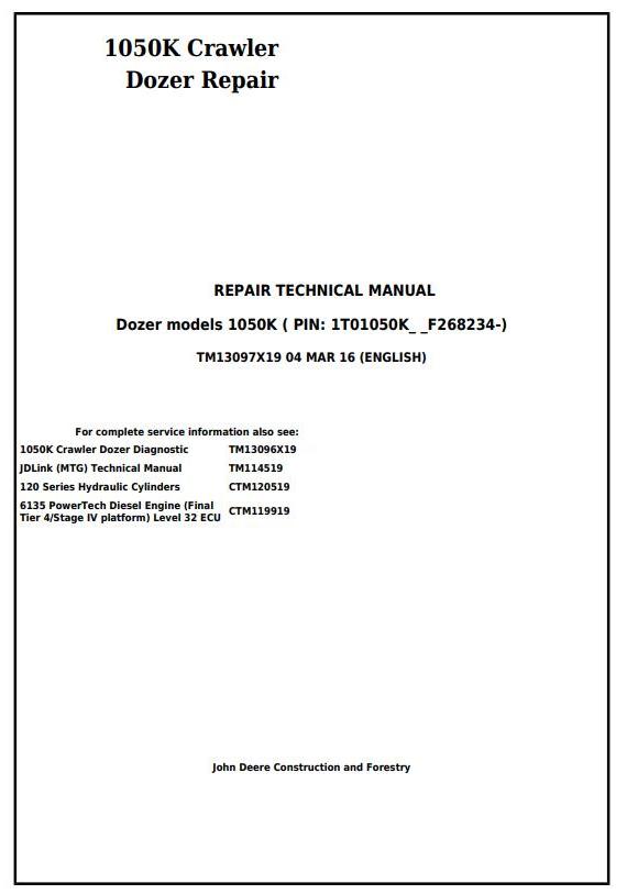 John Deere 1050K Crawler Dozer Repair Technical Manual TM13097X19