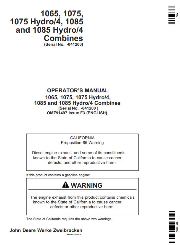 John Deere 1065 1075 1075 Hydro_4 1085 1085 Hydro_4 Operator's Manual OMZ91497 (224 pages)