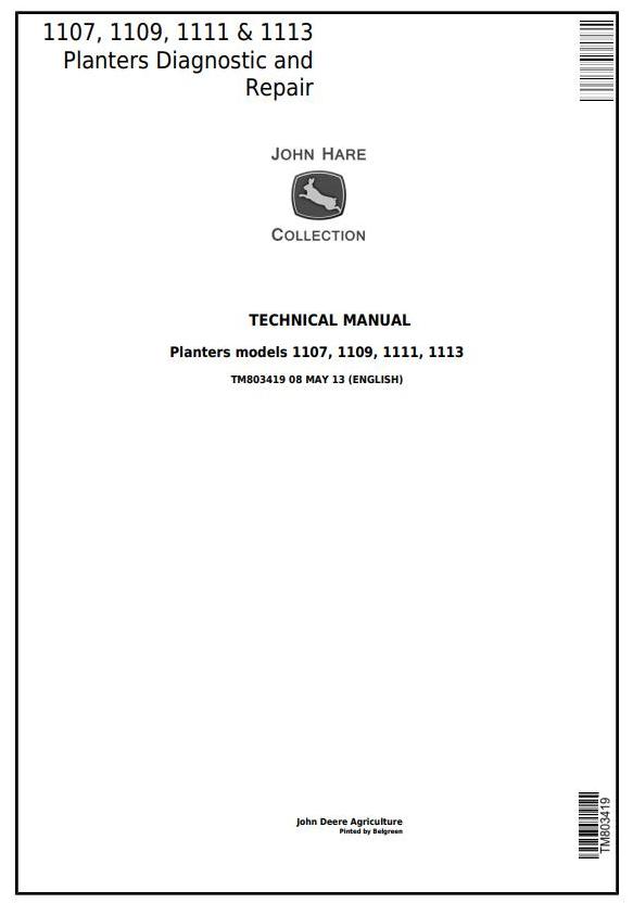 John Deere 1107 1109 1111 1113 Planter Diagnostic Repair Technical Manual TM803419