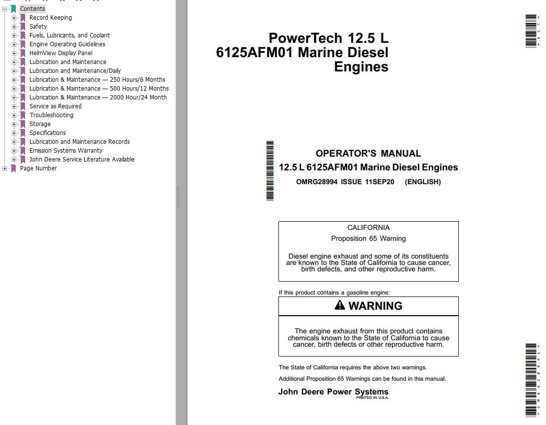 John Deere 12.5L 6125AFM01 Operator's Manual OMRG28994