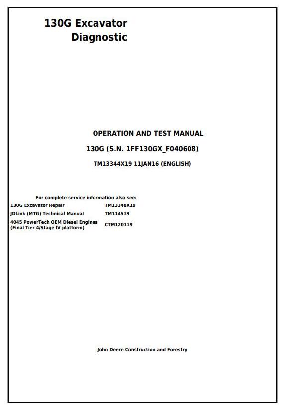 John Deere 130G Excavator Diagnostic Operation Test Manual TM13344X19