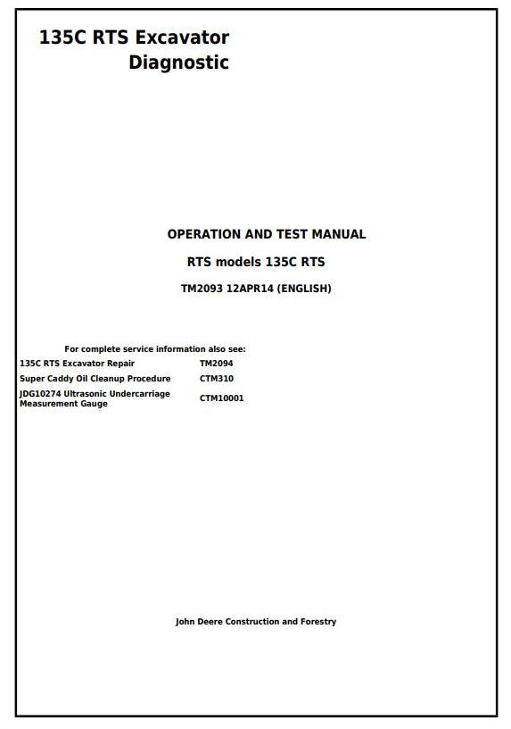 John Deere 135C RTS Excavator Diagnostic Operation Test Manual TM2093