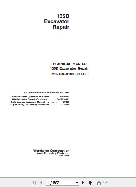 The Bookmarks of John Deere 135D Technical Repair Manual: