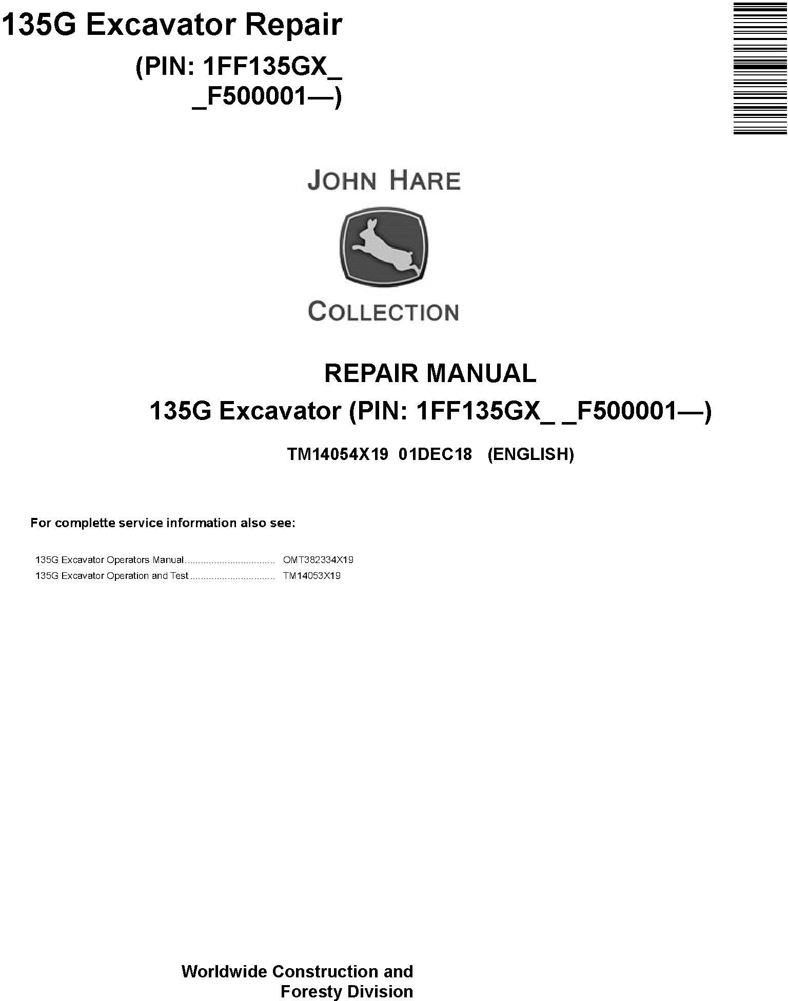 John Deere 135G Excavator Repair Manual TM14054X19