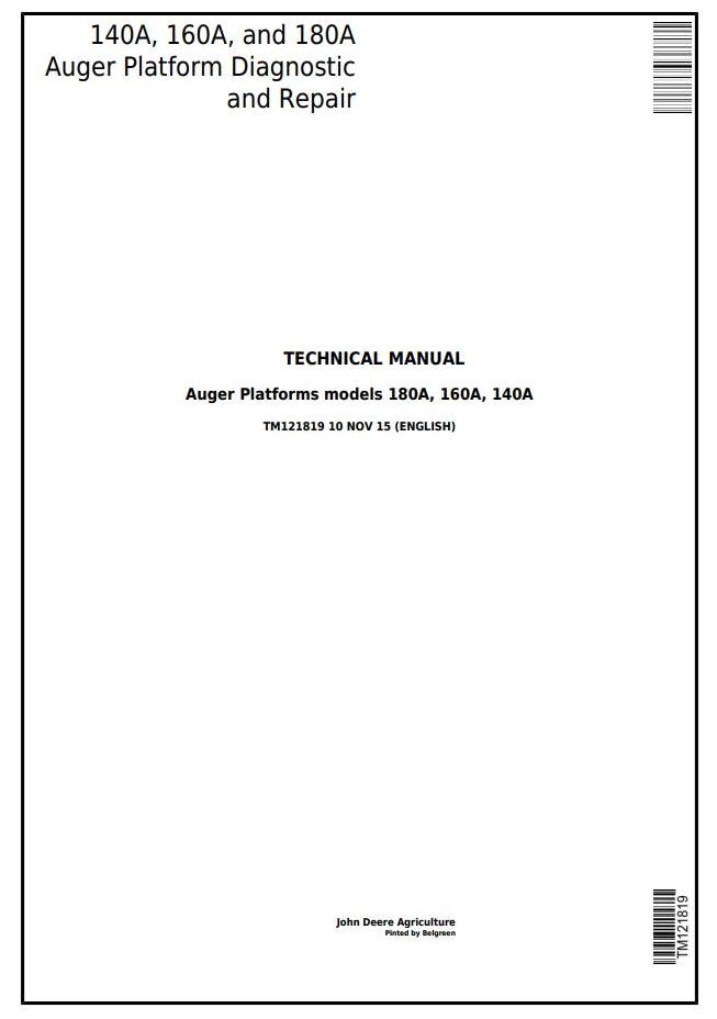 John Deere 140A 160A 180A Auger Platform Diagnostic Repair Technical Manual TM121819