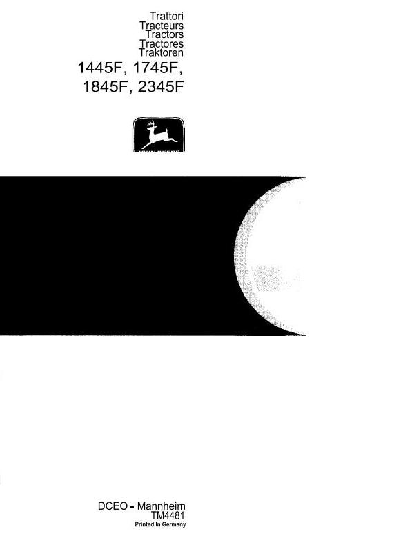 John Deere 1445F 1745F 1845F 2345F Tractor Technical Manual TM4481