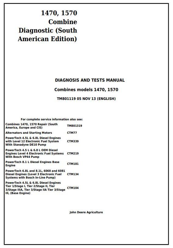 John Deere 1470 1570 Combine Diagnosis Test Manual TM801119