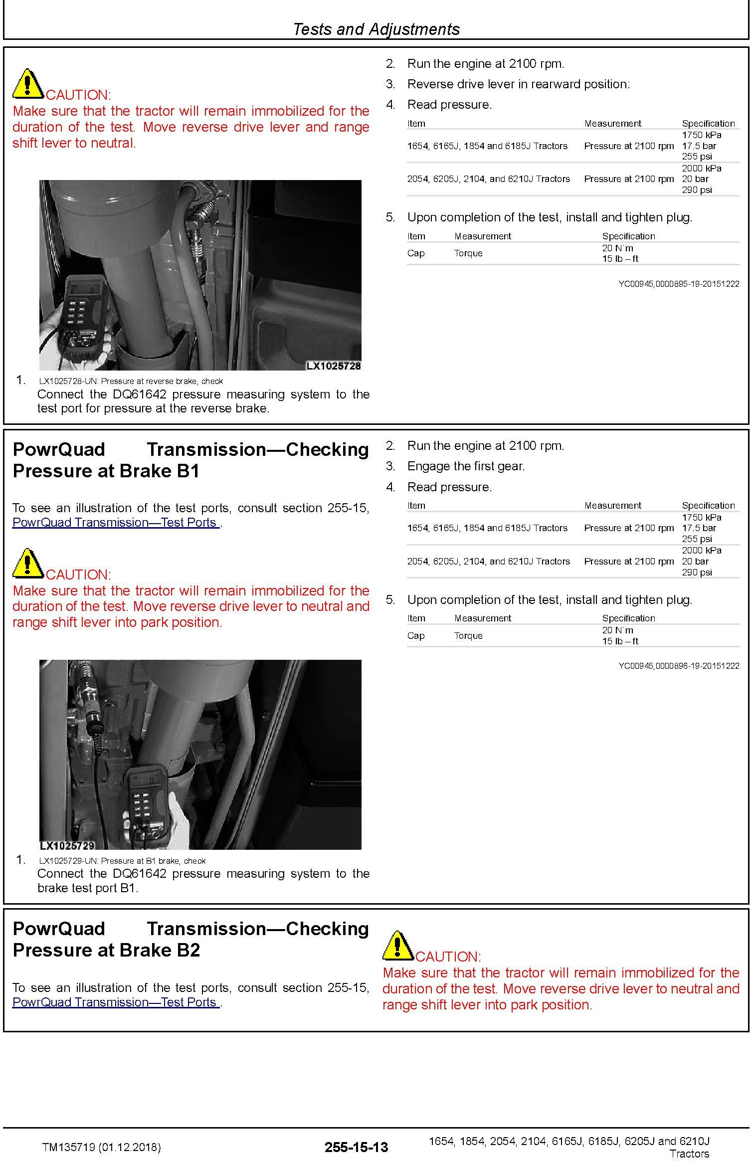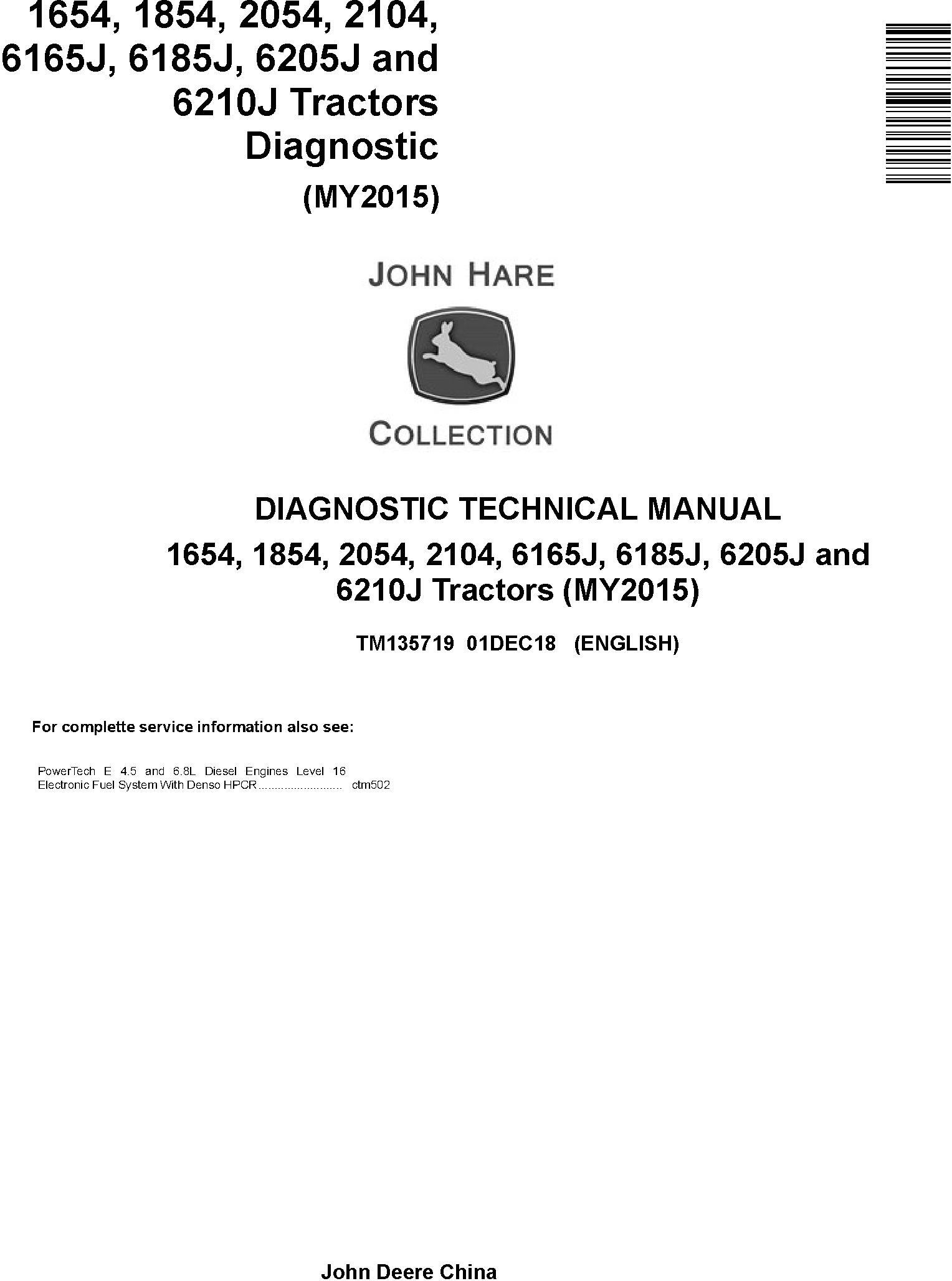 John Deere 1654 to 2104, 6165J to 6210J Tractor Diagnostic Technical Manual TM135719