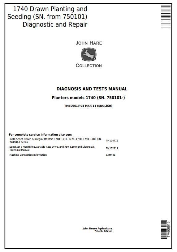 John Deere 1740 Planter Diagnostic Repair Manual TM606619