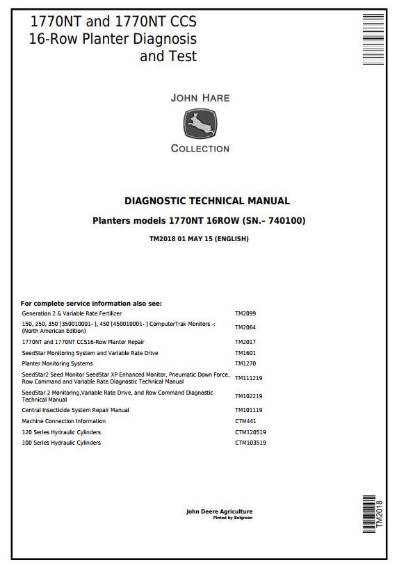 John Deere 1770NT 1770NT CCS 16-Row Planter Diagnosis Test Technical Manual TM2018