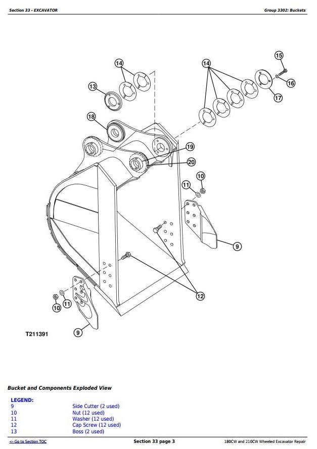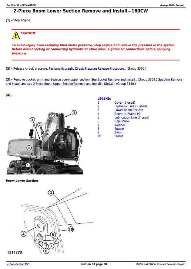 John Deere 180CW 210CW Wheeled Excavator Repair Technical Manual TM2287