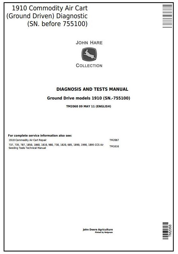 John Deere 1910 Commodity Air Cart Ground Drive Diagnostic Test Manual TM2068