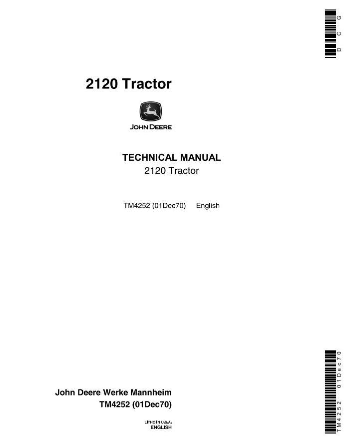 John Deere 2020 2120 Tractor Technical Manual TM4252